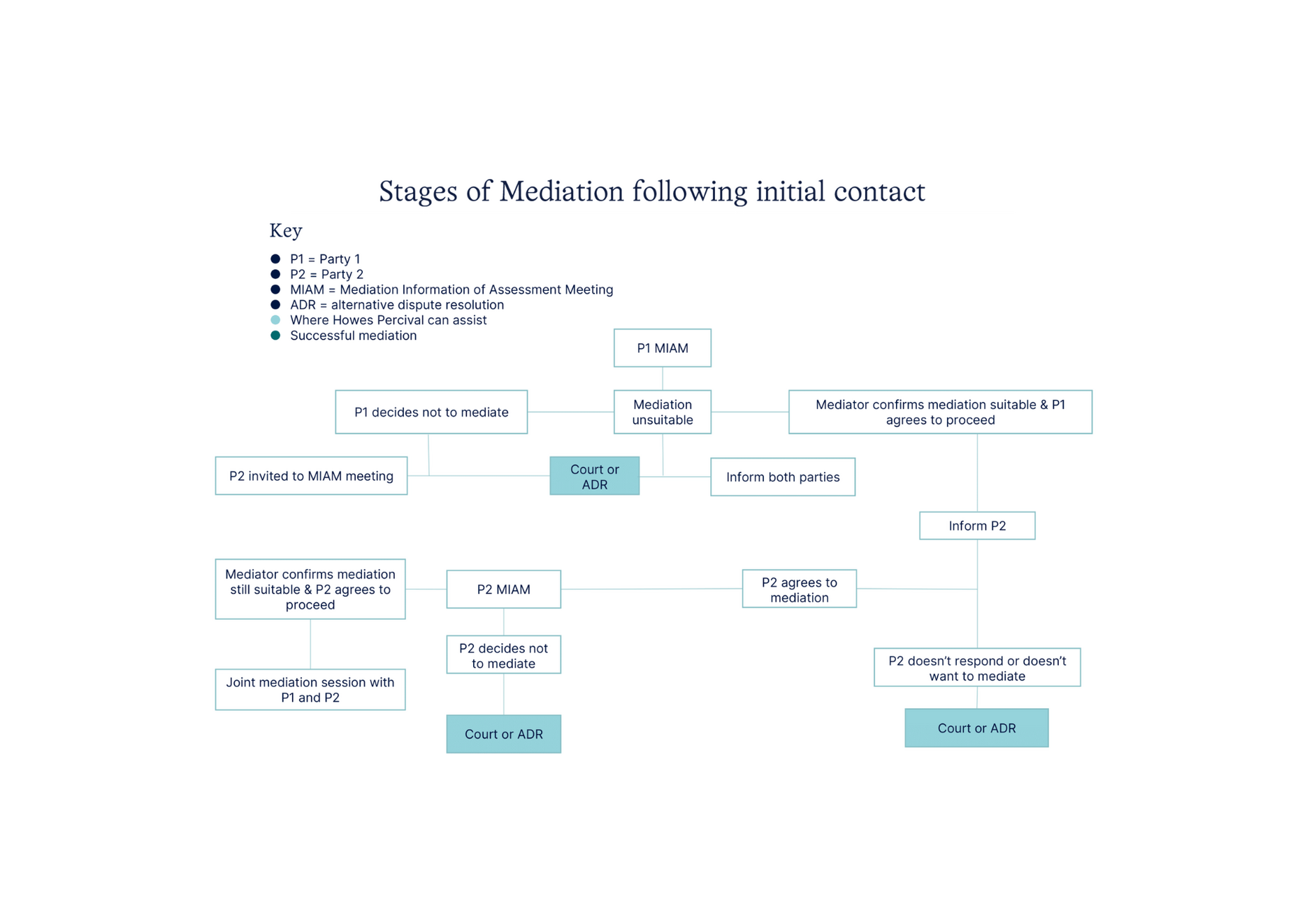 Below we provide a number of flowcharts setting out the mediation process along with a summary of what Mediation is and how it can be used.
